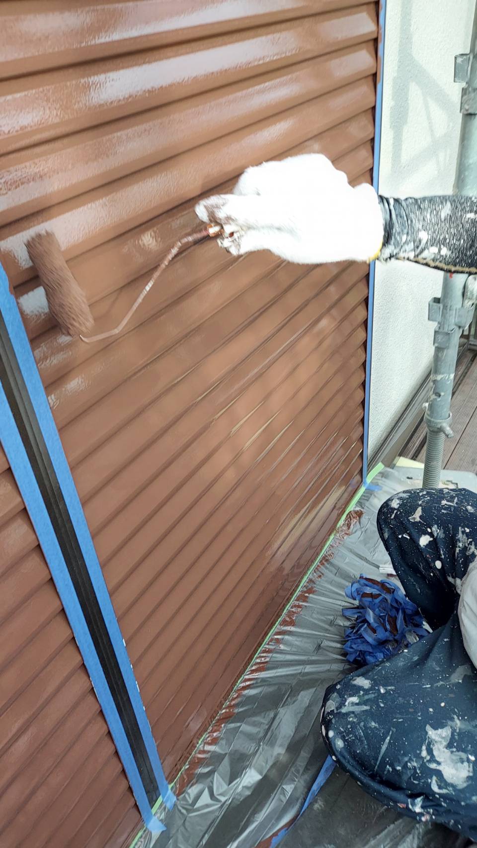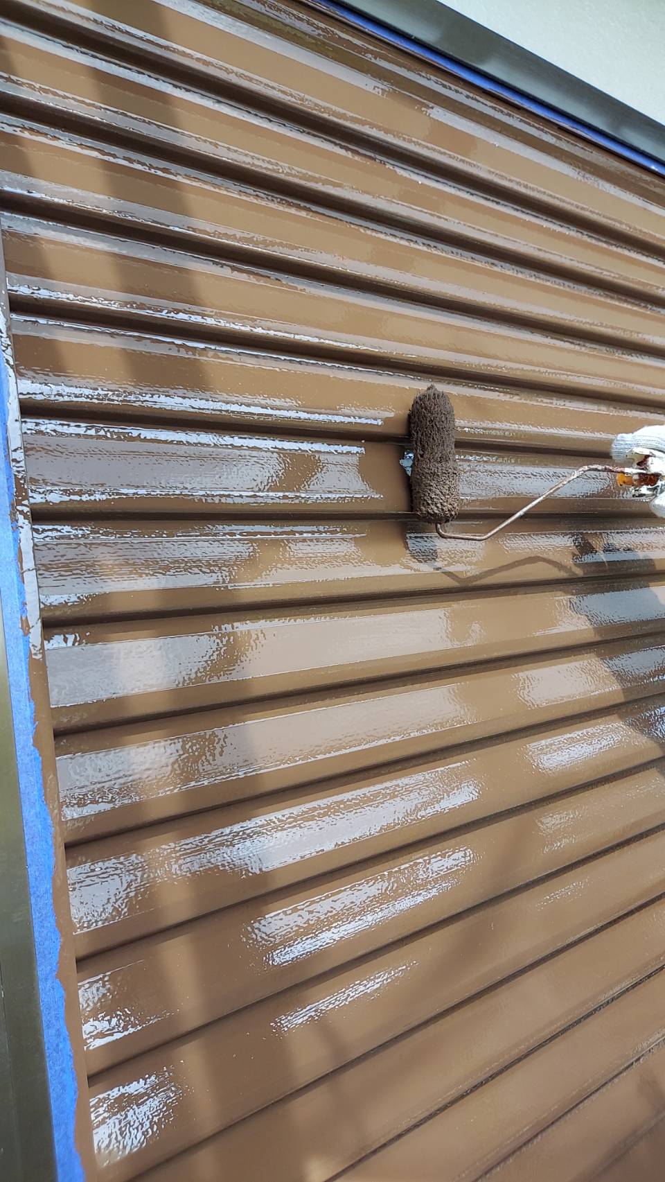 雨戸の塗装中でございます。この仕様のみ、機械で施工させていただいております。